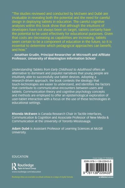 Understanding Tablets from Early Childhood to Adulthood offers an alternative to dominant and populist narratives that young people are intuitively able to successfully use tablet devices. Adopting a research-driven approach, the book contests the ideology that touch-technologies are easier to understand, and identifies the factors that contribute to communicative encounters between users and tablets. Communication theory and cognitive psychology concepts and methods are employed to offer an epistemological exploration of user-tablet interaction with a focus on the use of these technologies in educational settings.