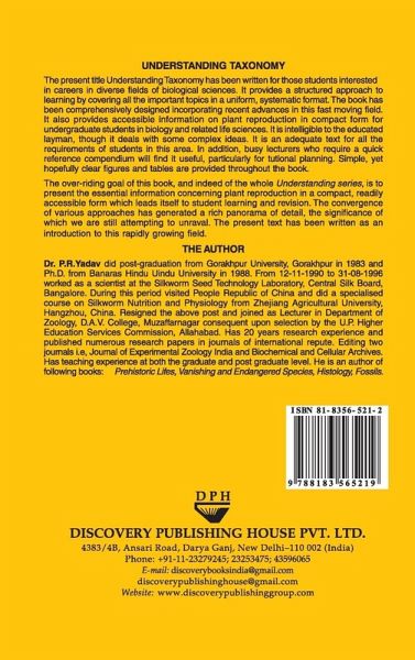 The present title "Understanding Taxonomy" has been written for those students interested in careers in diverse fields of biological sciences. It provides a structured approach to learning by covering all the important topics in a uniform, systematic format. The book has been comprehensively designed incorporating recent advances in this fast moving field. It also provides accessible information on plant reproduction in compact form for undergraduate students in biology and related life sciences. It is intelligible to the educated layman, though it deals with some complex ideas. It is an adequate text for all the requirements of students in this area. In addition, busy lecturers who require a quick reference compendium will find it useful, particularly for tutional planning. Simple, yet hopefully clear figures and tables are provided throughout the book.