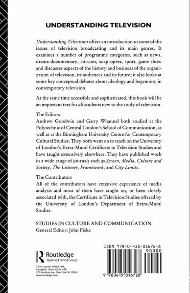 Understanding Television offers an introduction to some of the issues of television broadcasting and its main genres. It examines a number of programme categories, such as news, drama-documentary, sit-com, soap opera, sport and quizzes, and discusses aspects of the history of the organisation of television, its audiences and its future; it also looks at some key conceptual debates about hegemony in contemporary television