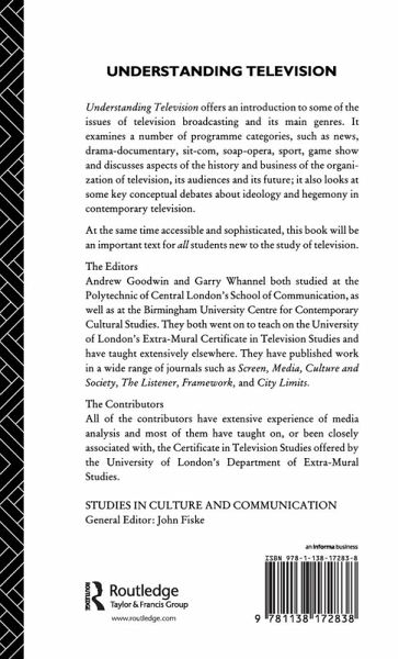 Understanding Television offers an introduction to some of the issues of television broadcasting and its main genres. It examines a number of programme categories, such as news, drama-documentary, sit-com, soap opera, sport and quizzes, and discusses aspects of the history of the organisation of television, its audiences and its future; it also looks at some key conceptual debates about hegemony in contemporary television
