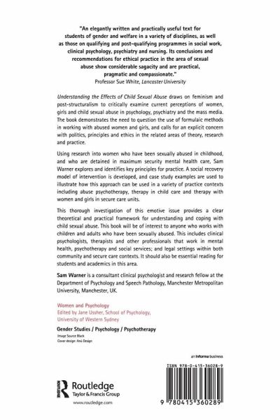 Part 1. Theory. Setting Scenes: Developing a Feminist, Post-structuralist Perspective. Disordered and Abnormal: Mainstream Misrecognition of Women and Child Sexual Abuse. Dangerous Desires: Child Sexual Abuse, Mental Disorder, and the Mass Media. Changing Concerns in Theory and Activism: Women, Child Sexual Abuse and Radical Politics. Part 2. Research. Contingent Morality and Ethical Research Practices: Critical Uses of Interviewing and Q-methodology. Narratives of Displacement: Women's Routes into Secure Hospitals. Embodying Disorder: Representing Women and Theorising the Effects of Child Sexual Abuse. Special Care and Child Sexual Abuse: Working with Women in Secure Hospitals. Part 3. Practice. Visible Therapy and Child Sexual Abuse: Critical Approaches to Working with Women and Girls. Between Investigation and Protection: Revising the Role of the Expert Witness in Child Care Proceedings. Reconstructing Blame and Re-enactment: Motherhood, Child Sexual Abuse and Domestic Violence. Beyond Deviance and Damnation: Working with Women and Girls in Secure Care Contexts.