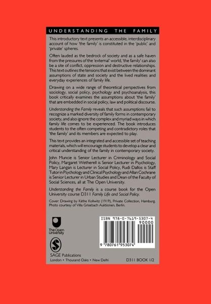 Introduction Public Definitions and Private Lives PART ONE: POLITICS, POLICY AND THE LAW Issues in the Study of `The Family¿ - John Muncie and Roger Sapsford Family Policy and Political Discourse - John Muncie and Margaret Wetherell Families and the Law - Hilary Land Patterns of Diversity and Lived Realities - Rudi Dallos and Roger Sapsford PART TWO: INTERACTIONS AND IDENTITIES Constructing Family Life - Rudi Dallos Family Belief Systems Social Structure, Ideology and Family Dynamics - Margaret Wetherell The Case of Parenting The Psychoanalytic Approach to Family Life - Margaret Wetherell A Feminist Looks at the Family - Lynne Segal Endnote - Roger Sapsford Public and Private