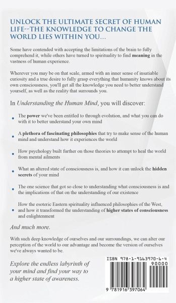 Unlock the ultimate secret of human life--the knowledge to change the world lies within you... Have you ever wondered what makes us, humans, such complex creatures, and why of all living things, we're the only ones who are self-aware? Have you wanted to explore the hidden secrets of your mind, striving to understand the endless potential your brain has to offer? Have you ever wondered what it would be like to unlock the full power of your brain and achieve a better understanding and a sense of unity with yourself and everything around you? The answer to your questions lies in one fascinating concept--human consciousness. Ever since humans acquired the ability to think and understand, we have been looking for answers to the meaning of our existence--we knew that we could make sense of what's around us, but we never managed to fully grasp how and why that was possible. Despite great progress in that direction in recent studies of neuroscience where researchers were able to associate various higher mental functions to different parts of the brain, the question of whether consciousness is actually in the brain, or if it's an experience outside our body, remains as elusive as ever. The quest to understand consciousness has, and always will, remain one of the biggest mysteries of our existence. Some have contended with accepting the limitations of the brain to fully comprehend it, while others have turned to spirituality to find meaning in the vastness of human experience. Wherever you may be on that scale, armed with an inner sense of insatiable curiosity and a true desire to fully grasp everything that humanity knows about its own consciousness, you'll get all the knowledge you need to better understand yourself, as well as the reality that surrounds you. In Understanding the Human Mind, you will discover: ¿ The power we've been entitled to through evolution, and what you can do with it to better understand your own mind ¿ A plethora of fascinating philosophies that try to make sense of the human mind and understand how it experiences the world ¿ How psychology built further on those theories to attempt to heal the world from mental ailments ¿ What an altered state of consciousness is, and how it can unlock the hidden secrets of your mind ¿ The one science that got so close to understanding what consciousness is and the implications of that on the understanding of our existence ¿ How the esoteric Eastern spirituality influenced philosophies of the West, and how it transformed the understanding of higher states of consciousness and enlightenment And much more. Understanding the fundamental functions of what makes us human is the ultimate power we can achieve. With such deep knowledge of ourselves and our surroundings, we can alter our perception of the world to our advantage and become the version of ourselves we've always wanted to be.