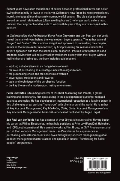 Understanding the Professional Buyer is a practical guide for sales people, giving them insight into the behaviour and strategies of buyers, so that they are able to deal with them more successfully and regain power in the buyer-seller relationship. In recent years the balance of power between buyer and seller has swung dramatically in favour of the buyer. Sellers are now faced with more professional, more knowledgeable and more powerful buyers - and the sales techniques used in previous years are no longer working. This book shows how to understand this new breed of buyer, in order to interact with them on a more level playing field. Contents include developments in the industry; purchasing organizations; types of buyers; purchasing analysis; and crucially, buyer-seller relations.