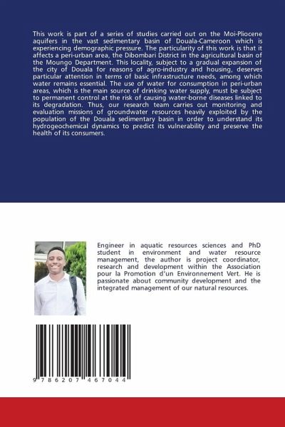 This work is part of a series of studies carried out on the Moi-Pliocene aquifers in the vast sedimentary basin of Douala-Cameroon which is experiencing demographic pressure. The particularity of this work is that it affects a peri-urban area, the Dibombari District in the agricultural basin of the Moungo Department. This locality, subject to a gradual expansion of the city of Douala for reasons of agro-industry and housing, deserves particular attention in terms of basic infrastructure needs, among which water remains essential. The use of water for consumption in peri-urban areas, which is the main source of drinking water supply, must be subject to permanent control at the risk of causing water-borne diseases linked to its degradation. Thus, our research team carries out monitoring and evaluation missions of groundwater resources heavily exploited by the population of the Douala sedimentary basin in order to understand its hydrogeochemical dynamics to predict its vulnerabilityand preserve the health of its consumers.