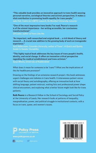 Addressing urgent challenges and debates in trans health, this book interweaves patient voices with social theory and autobiography, offering an innovative look at how shifting language, patient mistrust, waiting lists and professional power shape clinical encounters, and exploring what a better future might look like for trans patients.