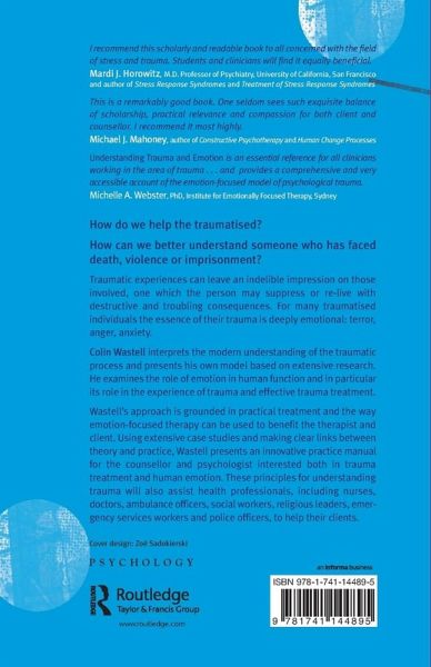 I recommend this scholarly and readable book to all concerned with the field of stress and trauma. Students and clinicians will find it equally beneficial. Mardi J. Horowitz, M.D. Professor of Psychiatry, University of California, San Francisco and author of Stress Response Syndromes and Treatment of Stress Response Syndromes This is a remarkably good book. One seldom sees such exquisite balance of scholarship, practical relevance and compassion for both client and counsellor. I recommend it most highly. Michael J. Mahoney, author of Constructive Psychotherapy and Human Change Processes Understanding Trauma and Emotion is an essential reference for all clinicians working in the area of trauma . . . and provides a comprehensive and very accessible account of the emotion-focused model of psychological trauma. Michelle A. Webster, PhD, Institute for Emotionally Focused Therapy, Sydney How do we help the traumatised? How can we better understand someone who has faced death, violence or imprisonment? Traumatic experiences can leave an indelible impression on those involved, one which the person may suppress or re-live with destructive and troubling consequences. For many traumatised individuals the essence of their trauma is deeply emotional: terror, anger, anxiety. Colin Wastell interprets the modern understanding of the traumatic process and presents his own model based on extensive research. He examines the role of emotion in human function and in particular its role in the experience of trauma and effective trauma treatment. Wastell's approach is grounded in practical treatment and the way emotion-focused therapy can be used to benefit the therapist and client. Using extensive case studies and making clear links between theory and practice, Wastell presents an innovative practice manual for the counsellor and psychologist interested both in trauma treatment and human emotion. These principles for understanding trauma will also assist health professionals, including nurses, doctors, ambulance officers, social workers, religious leaders, emergency services workers and police officers, to help their clients. This book is also supported by a website, containing a full report of the author's research at: www.allenandunwin.com/trauma.asp