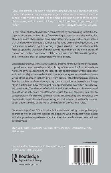 More and more philosophers have advocated varieties of virtue-based ethics that challenge moral theory traditionally founded on moral obligation and the delineation of what is right or wrong in given situations. Virtue ethics, which focuses upon the character of moral agents more than on the moral status of their actions or the consequences of those actions, has become one of the most important and stimulating areas of contemporary ethical theory. "Understanding Virtue Ethics" is an accessible and lively introduction to the subject. It provides a broad overview of the history of virtue ethics from Aristotle to Nietzsche as well as examining the ideas of such contemporary writers as Ricoeur and Levinas. Major themes dealt with by moral theory are examined and how a virtue ethics approach to them differs from those of other traditions is explored. Practical problems of moral complexity such as abortion, euthanasia, and integrity in politics, and how they might be approached from a virtue perspective are considered. The charges of relativism and egoism that are often mounted against virtue ethics are rebutted and virtues that are especially relevant to contemporary life, namely, courage, taking responsibility, and reverence are examined in depth. Finally, the author argues that virtue ethics is highly relevant to our understanding of the moral dimensions of professional roles.