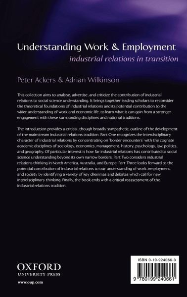 This book aims to analyze, advertise and criticize the contribution of industrial relations to social science understanding. It brings together leading scholars to reconsider the theoretical foundations of industrial relations and its potential contribution to the wider understanding of work and economic life, to learn what it can gain from a stronger engagement with these surrounding disciplines and national traditions.The introduction provides a critical, though broadly sympathetic outline of the development of the main stream industrial relations tradition. Part One recognizes the interdisciplinary character of industrial relations by concentrating on 'border encounters' with the cognate academic disciplines of sociology, economics, management, history, psychology, law, politics and geography. Of particular interest is how far industrial relations has contributed to social science understanding beyond its own narrow borders. Part Two combines a major critical analysis of the American school, with three shorter discussions of Australia, Europe and Japan. Part Three looks forward to the potential contribution of industrial relations to our understanding of work, employment and society by identifying a variety of key dilemmas and debates which call for new interdisciplinary thinking. Finally, the book ends with a critical reassessment of the industrial relations tradition.