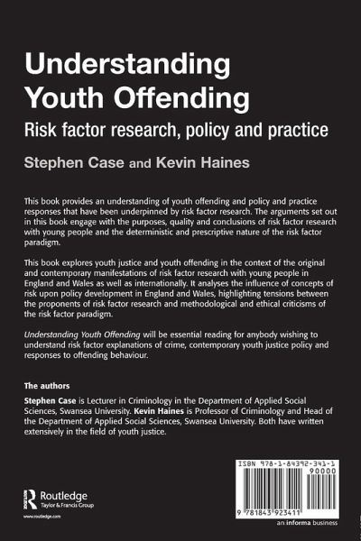 This book aims to provide an understanding of youth offending and policy and practice responses, particularly the risk-focused approaches that have underpinned much recent academic research, youth justice policy and interventions designed to reduce and prevent problem behaviour. There has been growing concern, however, on the part of critical criminologists and others, about the theoretical, epistemological, methodological and ethical bases of risk-focused research with young people. They have pointed particularly to the overly-deterministic and prescriptive nature of the risk factor paradigm. This book aims to meet the need for an exploration of youth justice and youth offending which takes account of the origins and contemporary manifestations of risk-focused work with young people. It analyses the influence of concepts of risk upon policy development in both England and Wales as well as internationally, highlighting tensions between the proponents of risk factor research and methodological and ethical criticisms of the risk factor paradigm. It will be essential reading for anybody wishing to understand risk factor explanation of crime, contemporary youth justice policy and responses to offending behaviour.