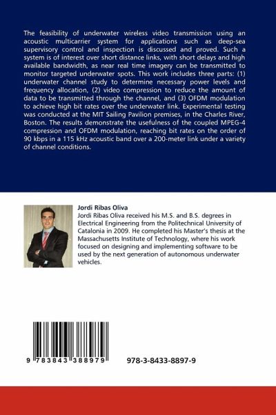 The feasibility of underwater wireless video transmission using an acoustic multicarrier system for applications such as deep-sea supervisory control and inspection is discussed and proved. Such a system is of interest over short distance links, with short delays and high available bandwidth, as near real time imagery can be transmitted to monitor targeted underwater spots. This work includes three parts: (1) underwater channel study to determine necessary power levels and frequency allocation, (2) video compression to reduce the amount of data to be transmitted through the channel, and (3) OFDM modulation to achieve high bit rates over the underwater link. Experimental testing was conducted at the MIT Sailing Pavilion premises, in the Charles River, Boston. The results demonstrate the usefulness of the coupled MPEG-4 compression and OFDM modulation, reaching bit rates on the order of 90 kbps in a 115 kHz acoustic band over a 200-meter link under a variety of channel conditions.