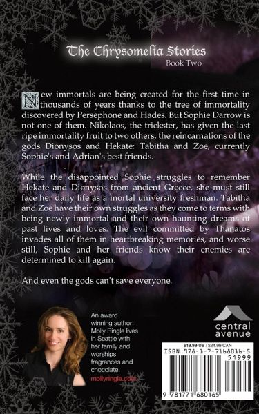 New immortals are being created for the first time in thousands of years thanks to the tree of immortality discovered by Persephone and Hades. But Sophie Darrow is not one of them. Nikolaos, the trickster, has given the last ripe immortality fruit to two others, the reincarnations of the gods Dionysos and Hekate: Tabitha and Zoe, currently Sophie's and Adrian's best friends. While the disappointed Sophie struggles to remember Hekate and Dionysos from ancient Greece, she must still face her daily life as a mortal university freshman. Tabitha and Zoe have their own struggles as they come to terms with being newly immortal and their own haunting dreams of past lives and loves. The evil committed by Thanatos invades all of them in heartbreaking memories, and worse still, Sophie and her friends know their enemies are determined to kill again. And even the gods can't save everyone.