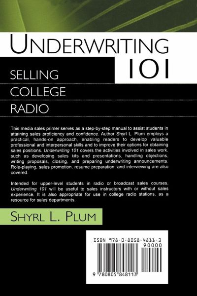 This media sales primer serves as a step-by-step manual to assist students in attaining sales proficiency and confidence. The author employs a practical, hands-on approach, enabling readers to develop valuable professional and interpersonal skills and to improve their options for obtaining sales positions. Underwriting 101 covers the activities involved in sales work, such as developing sales kits and presentations, handling objections, writing proposals, closing, and preparing underwriting announcements. Role-playing, sales promotion, résumé preparation, and interviewing are also covered. Special features include: *materials needed to teach the 15 week course, including a syllabus, calls schedule, positioning worksheet, sample proposals, sample résumé, sample cover letter, and course evaluation; *comments from former students who have secured sales positions upon completion of the course; *underwriting announcement guidelines for FCC conformation; and *a guide to Internet research tools for sales presentation enhancement. Intended for upper-level students in radio or broadcast sales courses, Underwriting 101 will be useful to sales instructors with or without sales experience. It is also appropriate for use in college radio stations, as a resource for sales departments.