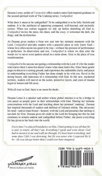 What does it mean to be Undignified? To be undignified is to be fully foolish and undone. It is the antithesis of appearing dignified, well-learned, composed and societally correct. Undignified takes a backwards spin on societal trends and gives the reader an intimate place to truly see the "God whose love seems too good to be true", without the pressure of performance or perfection. The author of her former book, Unraveled, gives us a front row seat into her intimate moments with the Lord and reveals a daring beauty about the innocence of relationship with God. Undignified walks you through uncharted territory where the scales, the protective layers, and years of trauma begin to fall off. They have no choice but to be "loosed" in this place. Here, there is no room for anxiety and no reason to prove yourself. Undignified ground breeds a trust in the One who knew you before time and space defined a day. When culture suggests you tidy up before absorbing all God is, Undignified invites the mess, the chaos and the crazy. It welcomes the dark, the dingy, and the dysfunction. It's in this place where we dare utter the words we've never spoken aloud in a room alone. This is the place of true transformation. There is nothing to do here, but to observe and rest. In Undignfied, an undeniable light shines on the state at which we think we should approach God. This book is for anyone navigating a relationship with the Lord. It's for the one who knows there's more but doesn't know what more looks like. It is the resting ground for you to see and experience everything Father has done to simply be with you.