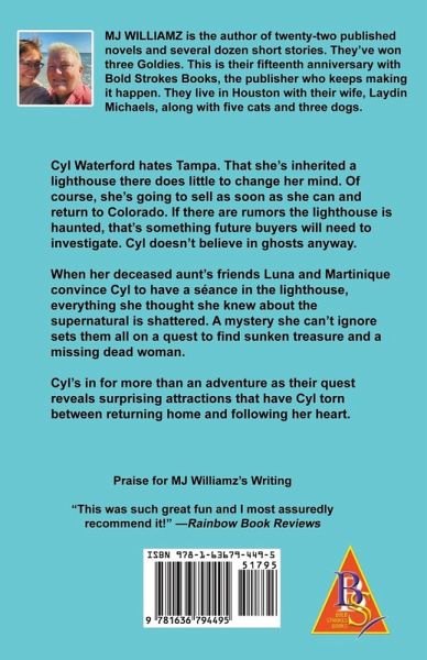 Cyl Waterford hates Tampa. That she's inherited a lighthouse there does little to change her mind. Of course, she's going to sell as soon as she can and return to Colorado. If there are rumors the lighthouse is haunted, that's something future buyers will need to investigate. Cyl doesn't believe in ghosts anyway. When her deceased aunt's friends Luna and Martinique convince Cyl to have a séance in the lighthouse, everything she thought she knew about the supernatural is shattered. A mystery she can't ignore sets them all on a quest to find sunken treasure and a missing dead woman. Cyl's in for more than an adventure as their quest reveals surprising attractions that have Cyl torn between returning home and following her heart.