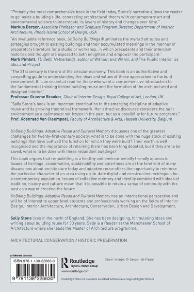 UnDoing Buildings: Adaptive Reuse and Cultural Memory discusses one of the greatest challenges for the twenty-first century society: what is to be done with the huge stock of existing buildings that have outlived the function for which they were built?