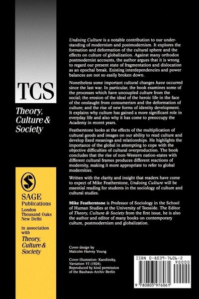 `What David Chaney has called the "cultural turn" in recent sociology is more than ably reflected and pursued in this thoroughly admirable text by Mike Featherstone. Of course, this should cause little surprise; Theory, Culture & Society, with which Featherstone is so involved... has provided much of the space and encouragement for the sociological examination of the cultural. Yet Undoing Culture demonstrates that Featherstone's importance to the cultural turn goes far beyond his institutional position as an enabler.... There can be little doubt that sociologists of culture and their students will find much of merit and stimulation in Featherstone's work' - The Sociological Review `Featherstone argues that globalization and modernization each hold two contradictory aspects: one toward increasing order and the other toward change and chaos. In this interesting and important book, he focuses primarily on a neglected aspect of modernization as a world culture of competing differences, power struggles, and cultural prestige.... Featherstone's analyses of prominent social theorists from Baudrillard to Bauman is impressive. This is a worthwhile discussion of postmodernity and modernity' - Choice