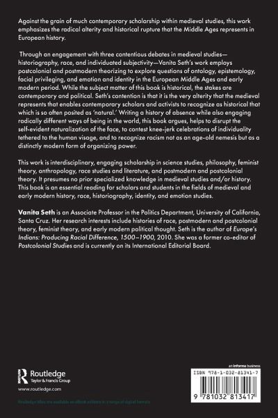 Through an engagement with three contentious debates in medieval studies - historiography, race and individuated subjectivity - Vanita Seth's work employs postcolonial and postmodern theorizing to explore questions of ontology, epistemology, facial privileging, and emotion and identity in the European Middle Ages and early modern period. While the subject matter of this book is historical, the stakes are contemporary and political. Seth's contention is that it is the very alterity that the medieval represents that enables contemporary scholars and activists to recognize as historical that which is so often posited as 'natural.' Writing a history of absence while also engaging radically different ways of being in the world, this book argues, helps to disrupt the self-evident naturalization of the face, to contest knee-jerk celebrations of individuality tethered to the human visage, and to recognize racism not as an age-old nemesis but as a distinctly modern form of organizing power.