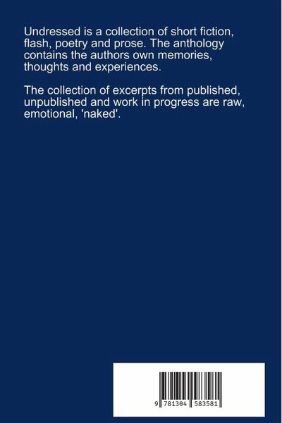 Undressed is a collection of short fiction, flash fiction, poetry and prose. The anthology contains the author's own memories, thoughts and experiences and also contains excerpts from published and unpublished novels. The stories are raw, emotional, 'naked'.