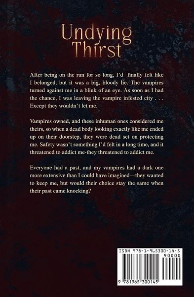 After being on the run for so long, I'd finally felt like I belonged, but it was a big, bloody lie. The vampires turned against me in a blink of an eye. As soon as I had the chance, I was leaving the vampire infested city . . . Except they wouldn't let me. Vampires owned, and these inhuman ones considered me theirs, so when a dead body looking exactly like me ended up on their doorstep, they were dead set on protecting me. Safety wasn't something I'd felt in a long time, and it threatened to addict me-they threatened to addict me. Everyone had a past, and my vampires had a dark one more extensive than I could have imagined-they wanted to keep me, but would their choice stay the same when their past came knocking?