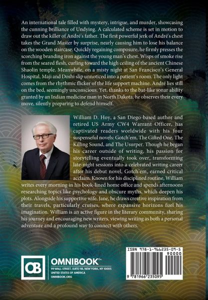 William D. Hoy, a San Diego-based author and retired US Army CW4 Warrant Officer, has captivated readers worldwide with his four suspenseful novels: Gotch'em, The Gifted One, The Killing Sound, and The Usurper. Though he began his career outside of writing, his passion for storytelling eventually took over, transforming late-night sessions into a celebrated writing career after his debut novel, Gotch'em, earned critical acclaim. Known for his disciplined routine, William writes every morning in his book-lined home office and spends afternoons researching topics like psychology and obscure myths, which deepen his plots. Alongside his supportive wife, Jane, he draws creative inspiration from their travels, particularly cruises, where expansive horizons fuel his imagination. William is an active figure in the literary community, sharing his journey and encouraging new writers, viewing writing as both a personal adventure and a profound way to connect with others.