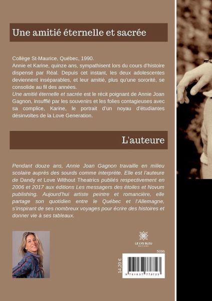 Collège St-Maurice, Québec, 1990. Annie et Karine, quinze ans, sympathisent lors du cours d¿histoire dispensé par Réal. Depuis cet instant, les deux adolescentes deviennent inséparables, et leur amitié, plus qüune sororité, se consolide au fil des années. Une amitié éternelle et sacrée est le récit poignant de Annie Joan Gagnon, insufflé par les souvenirs et les folies contagieuses avec sa complice, Karine, le portrait d¿un noyau d¿étudiantes désinvoltes de la Love Generation.