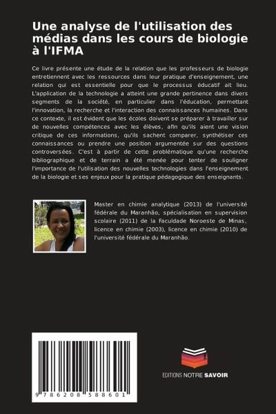 Ce livre présente une étude de la relation que les professeurs de biologie entretiennent avec les ressources dans leur pratique d'enseignement, une relation qui est essentielle pour que le processus éducatif ait lieu. L'application de la technologie a atteint une grande pertinence dans divers segments de la société, en particulier dans l'éducation, permettant l'innovation, la recherche et l'interaction des connaissances humaines. Dans ce contexte, il est évident que les écoles doivent se préparer à travailler sur de nouvelles compétences avec les élèves, afin qu'ils aient une vision critique de ces informations, qu'ils sachent comparer, synthétiser ces connaissances ou prendre une position argumentée sur des questions controversées. C'est à partir de cette problématique qu'une recherche bibliographique et de terrain a été menée pour tenter de souligner l'importance de l'utilisation des nouvelles technologies dans l'enseignement de la biologie et ses enjeux pour la pratique pédagogique des enseignants.