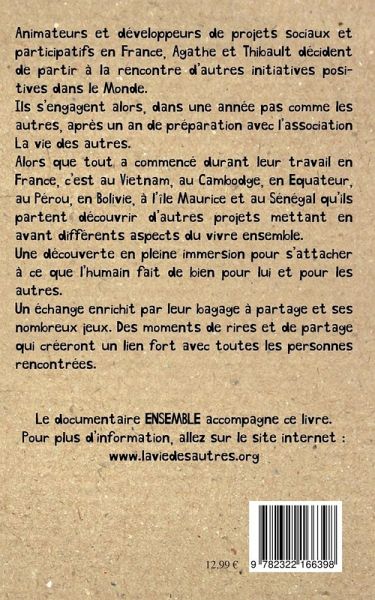 Animateurs et développeurs de projets sociaux et participatifs en France, Agathe et Thibault décident de partir à la rencontre d'autres initiatives positives dans le Monde. Ils s'engagent alors dans une année pas comme les autres après un an de préparation avec l'association La vie des autres. Alors que tout a commencé à leur travail en France, c'est au Vietnam, au Cambodge, en Equateur, au Pérou, en Bolivie, à l'Ile Maurice et au Sénégal qu'ils partent découvrir d'autres projets mettant en avant différents aspects du vivre ensemble. Une découverte en pleine immersion pour s'attacher à ce que l'humain fait de bien pour lui et pour les autres. Un échange enrichit par leur bagage à partage et ses nombreux jeux. Des moments de rires et de partage qui créeront un lien fort avec toutes les personnes rencontrées.