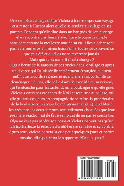 Une tempête de neige oblige Violeta à interrompre son voyage et à rester à Huesca alors qu'elle se rendait au village de ses parents. Pendant qu'elle dîne dans un bar près de son auberge, elle rencontre une femme avec qui elle passe ce qu'elle considère comme la meilleure nuit de sa vie. Elles n'échangent pas leurs numéros, ni même leurs noms, toutes deux savent ce que ça a été et qu'elles ne se reverront jamais. Mais que se passe-t-il si cela change ? Olga a hérité de la maison de ses oncles dans le village et après un divorce qui l'a laissée financièrement étranglée, elle sent enfin que la corde se desserre quand elle a l'opportunité de déménager. Là-bas, elle se lie d'amitié avec Maite, sa voisine, qui l'embauche pour travailler dans la boulangerie qu'elle gère. Violeta a enfin ses vacances de Noël et retourne au village, où elle passera ces jours en compagnie de sa mère, la propriétaire de la boulangerie où travaille maintenant Olga. Quand Maite les présente, les deux femmes sont tellement choquées que leur première réaction est de faire semblant de ne pas se connaître. Olga ne veut pas perdre son poste et Violeta ne veut pas qu'un fait isolé affecte la relation d'amitié entre sa mère et sa voisine. Après tout, Violeta ne sera là que pour quelques jours et partira ensuite, elles pourront le supporter. N'est-ce pas ?