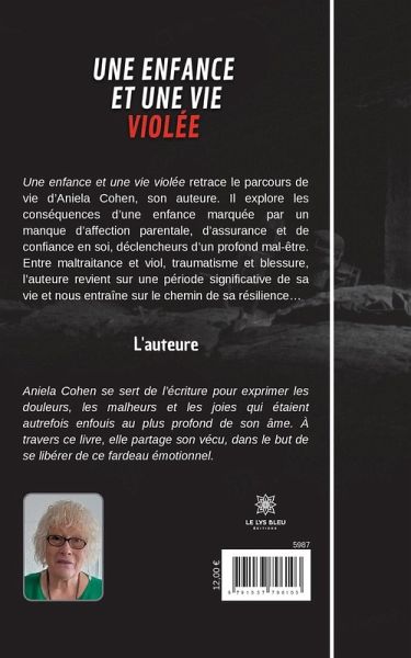 Une enfance et une vie violée retrace le parcours de vie d'Aniela Cohen, son auteure. Il explore les conséquences d'une enfance marquée par un manque d'affection parentale, d'assurance et de confiance en soi, déclencheurs d'un profond mal-être. Entre maltraitance et viol, traumatisme et blessure, l'auteure revient sur une période significative de sa vie et nous entraîne sur le chemin de sa résilience...
