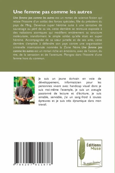 Une femme pas comme les autres est un roman de science-fiction qui relate l'histoire d'un soldat des forces spéciales, fille du président du pays de Ming. Devenue super héroïne suite à une tentative de sauvetage au péril de sa vie, cette dernière se retrouve exposée à des radiations atomiques qui modifient entièrement sa structure moléculaire, transformant le simple soldat qu'elle était en super héroïne. Accompagnée de sa soeur jumelle et de ses amis, cette dernière s'emploie à défendre son pays contre une organisation criminelle internationale nommée la Zone Noire. Une femme pas comme les autres est un roman riche en émotions, avec de l'action, du rire, de la sensation et de l'aventure. Plongez dans l'histoire d'une femme hors du commun.