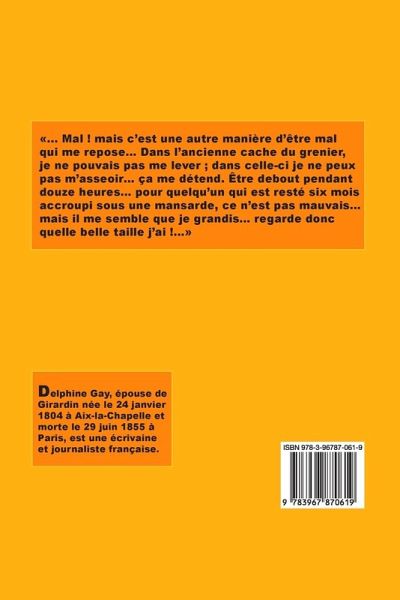 «... Mal ! mais c’est une autre manière d’être mal qui me repose… Dans l’ancienne cache du grenier, je ne pouvais pas me lever ; dans celle-ci je ne peux pas m’asseoir… ça me détend. Être debout pendant douze heures… pour quelqu’un qui est resté six mois accroupi sous une mansarde, ce n’est pas mauvais… mais il me semble que je grandis… regarde donc quelle belle taille j’ai !…»