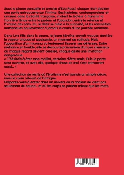 Sous la plume sensuelle et précise d'Eva Rossi, chaque récit devient une porte entrouverte sur l'intime. Ses histoires, contemporaines et ancrées dans la réalité française, invitent le lecteur à franchir la frontière ténue entre la pudeur et l'abandon, entre la retenue et l'ivresse des sens. Ici, le désir se mêle à la curiosité, et les rencontres inattendues bouleversent à jamais le cours d'une journée ordinaire.Dans Une fille dans le sauna, la jeune héroïne croyait trouver, derrière la vapeur chaude et apaisante, un moment de solitude. Mais l'apparition d'un inconnu va lentement fissurer ses défenses. Entre méfiance et trouble, elle se découvre prisonnière d'un jeu silencieux où chaque regard devient caresse, chaque geste une invitation dangereuse.« J'hésitais à ôter mon maillot, certaine d'être seule. Puis la porte s'est ouverte, et avec elle, quelque chose en moi s'est entrouvert aussi... »Une collection de récits où l'érotisme n'est jamais un simple décor, mais le coeur vibrant de l'intrigue.Préparez-vous à entrer dans un univers où la chaleur ne vient pas seulement du sauna... et où les corps se parlent mieux que les mots.
