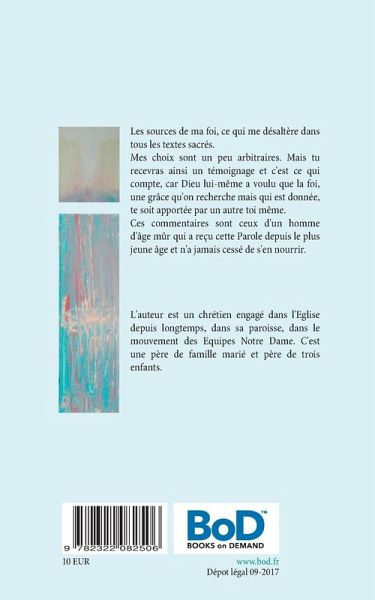 Les sources de ma foi, ce qui me désaltère dans tous les textes sacrés.Mes choix sont un peu arbitraires. Mais tu recevras ainsi un témoignage et c'est ce qui compte, car Dieu lui-même a voulu que la foi, une grâce qu'on recherche mais qui est donnée, te soit apportée par un autre toi même.Ces commentaires sont ceux d'un homme d'âge mûr qui a reçu cette Parole depuis le plus jeune âge et n'a jamais cessé de s'en nourrir.