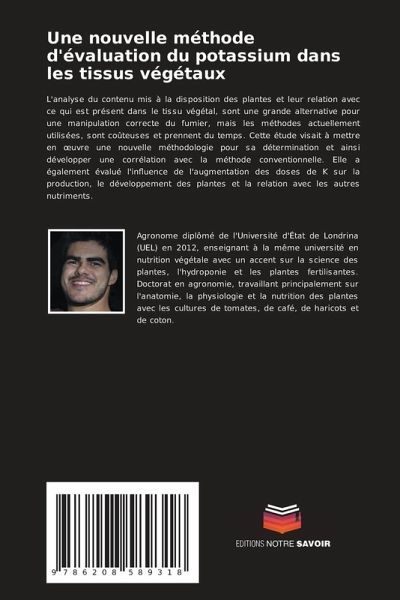 L'analyse du contenu mis à la disposition des plantes et leur relation avec ce qui est présent dans le tissu végétal, sont une grande alternative pour une manipulation correcte du fumier, mais les méthodes actuellement utilisées, sont coûteuses et prennent du temps. Cette étude visait à mettre en oeuvre une nouvelle méthodologie pour sa détermination et ainsi développer une corrélation avec la méthode conventionnelle. Elle a également évalué l'influence de l'augmentation des doses de K sur la production, le développement des plantes et la relation avec les autres nutriments.