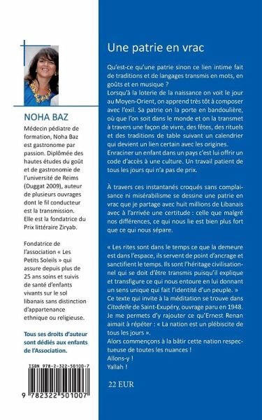 Médecin pédiatre de formation,noha baz est passsionnée de gastronomie. Auteur de plusieurs ouvrages gastronomiques dont le fil conducteur est la transmission du gout avec en particukier les traditions des tables libanaises.Elle dédit depuis des années tous ses droits d'auteur à l'association ' Les Petits Soleils".