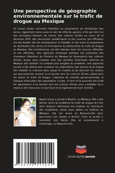 Ce travail étudie comment l'abolition du programme de distribution des terres, également connu sous le nom de réforme agraire, a fini par être l'un des principaux facteurs de l'essor des cultures illicites au cours de la décennie 1970. Des documents académiques et des sources non officielles ont été étudiés afin de contextualiser et d'établir un lien entre le programme de distribution des terres et l'émergence du phénomène du trafic de drogue au Mexique. Des incohérences ont été relevées dans les sources officielles et non officielles. Une approche d'écologie politique est présentée afin d'analyser l'évolution de l'histoire du Mexique et l'émergence des cultures illicites, toutes deux croisées avec des données historiques externes du Mexique afin d'établir un contexte plus tangible du problème. Une approche sociale a été utilisée pour analyser les antécédents des barons de la drogue afin d'établir le scénario dans lequel ils vivaient et de dessiner les actions qui pourraient les amener à se tourner vers les cultures illicites, jetant ainsi les bases du trafic de drogue. L'absence de contrôle gouvernemental, le manque d'éducation des populations rurales, la faim et la pauvreté ont incité les agriculteurs à se tourner vers les cultures illicites pour compléter leurs revenus afin d'assurer la nourriture et le logement de leurs familles.