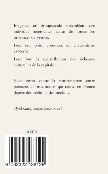 Imaginez un groupuscule rassemblant des individus hétéroclites de toutes les provinces de France.Leur seul point commun : un chauvinisme exacerbé.Leur but : la redistribution des richesses culturelles de la capitale. Voici enfin venue la confrontation entre parisiens et provinciaux qui couve en France depuis des siècles et des siècles...Quel camp rejoindrez-vous ?