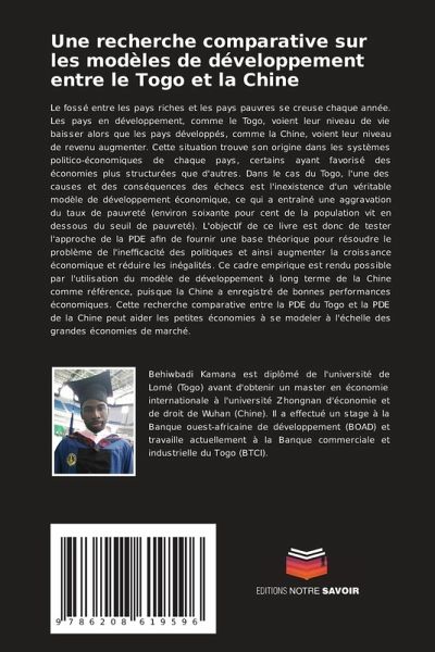 Le fossé entre les pays riches et les pays pauvres se creuse chaque année. Les pays en développement, comme le Togo, voient leur niveau de vie baisser alors que les pays développés, comme la Chine, voient leur niveau de revenu augmenter. Cette situation trouve son origine dans les systèmes politico-économiques de chaque pays, certains ayant favorisé des économies plus structurées que d'autres. Dans le cas du Togo, l'une des causes et des conséquences des échecs est l'inexistence d'un véritable modèle de développement économique, ce qui a entraîné une aggravation du taux de pauvreté (environ soixante pour cent de la population vit en dessous du seuil de pauvreté). L'objectif de ce livre est donc de tester l'approche de la PDE afin de fournir une base théorique pour résoudre le problème de l'inefficacité des politiques et ainsi augmenter la croissance économique et réduire les inégalités. Ce cadre empirique est rendu possible par l'utilisation du modèle de développement à long terme de la Chine comme référence, puisque la Chine a enregistré de bonnes performances économiques. Cette recherche comparative entre la PDE du Togo et la PDE de la Chine peut aider les petites économies à se modeler à l'échelle des grandes économies de marché.