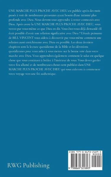 UNE MARCHE PLUS PROCHE AVEC DIEU est publiée après des mois passés à voir de nombreuses personnes ayant besoin d'une intimité plus profonde avec Dieu. Nous devons tous apprendre à rester connectés avec Dieu. Après avoir lu UNE MARCHE PLUS PROCHE AVEC DIEU, vous verrez par vous-même ce que Dieu en dit. Vous êtes-vous déjà demandé s'il était possible d'avoir une relation significative avec Dieu ? L'étude puissante de BILL VINCENT vous aidera à découvrir par vous-même comment une relation aussi enrichissante avec Dieu est possible. Les deux derniers chapitres sont la lecture quotidienne de la Bible et les dévotions quotidiennes pour vous aider à vous mettre sur la bonne voie dans votre marche avec Dieu. Vous apprendrez également comment le salut est quelque chose que vous continuez à brûler à l'intérieur de vous. Vous devez garder votre feu allumé et de nombreuses choses sont publiées dans UNE MARCHE PLUS PROCHE AVEC DIEU qui vous aideront à commencer votre voyage vers une foi authentique.