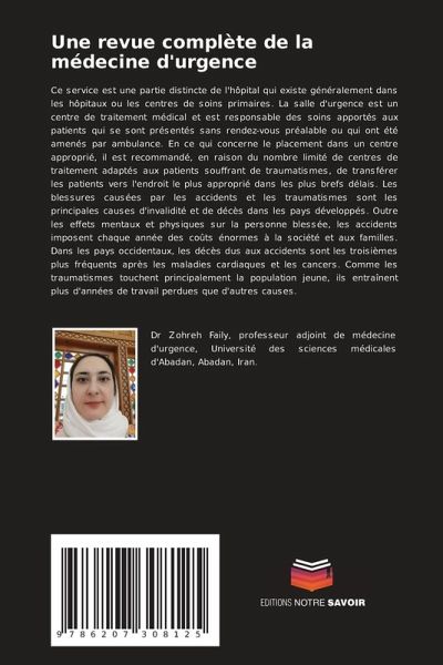 Ce service est une partie distincte de l'hôpital qui existe généralement dans les hôpitaux ou les centres de soins primaires. La salle d'urgence est un centre de traitement médical et est responsable des soins apportés aux patients qui se sont présentés sans rendez-vous préalable ou qui ont été amenés par ambulance. En ce qui concerne le placement dans un centre approprié, il est recommandé, en raison du nombre limité de centres de traitement adaptés aux patients souffrant de traumatismes, de transférer les patients vers l'endroit le plus approprié dans les plus brefs délais. Les blessures causées par les accidents et les traumatismes sont les principales causes d'invalidité et de décès dans les pays développés. Outre les effets mentaux et physiques sur la personne blessée, les accidents imposent chaque année des coûts énormes à la société et aux familles. Dans les pays occidentaux, les décès dus aux accidents sont les troisièmes plus fréquents après les maladies cardiaques et les cancers. Comme les traumatismes touchent principalement la population jeune, ils entraînent plus d'années de travail perdues que d'autres causes.