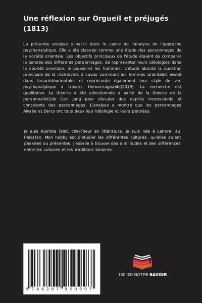 La présente analyse s'inscrit dans le cadre de l'analyse de l'approche psychanalytique. Elle a été classée comme une étude des personnages de la société orientale. Les objectifs principaux de l'étude étaient de comparer la pensée des différents personnages, de représenter leurs idéologies dans la société orientale, le pouvoiret les hommes. L'étude aborde la question principale de la recherche, à savoir comment les femmes orientales vivent dans lasociétéorientale, et représente également leur style de vie, psychanalytique à travers Unmarriageable(2019). La recherche est qualitative. La théorie a été sélectionnée à partir de la théorie de la personnalité1de Carl Jung pour discuter des esprits inconscients et conscients des personnages. L'analyse a montré que les personnages Alysba et Darcy ont tous deux leur idéologie et leurs pensées.