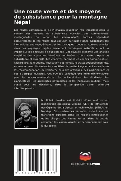 Les routes commerciales de l'Himalaya jouent un rôle important dans le soutien des moyens de subsistance durables des communautés montagnardes du Népal. Les communautés locales dépendent exclusivement de ces routes pour assurer leur subsistance. Cependant, les interactions anthropogéniques et les pratiques routières conventionnelles dans des paysages fragiles exacerbent les risques naturels et ont un impact sur les secteurs de subsistance. Cet ouvrage présente une analyse empirique des approches théoriques combinées - route verte, moyens de subsistance et durabilité. Les chapitres décrivent les conflits homme-nature, l'agriculture, le tourisme, l'utilisation des terres, le statut sociopolitique, etc. en relation avec l'infrastructure routière. Ils mettent également en évidence les recommandations de recherche pour des pratiques, des participations et des stratégies durables. Cet ouvrage constitue une mine d'informations pour les environnementalistes, les universitaires, les étudiants, les planificateurs, les architectes paysagistes et les ingénieurs routiers, mais aussi pour les décideurs, dans la perspective d'une recherche interdisciplinaire.