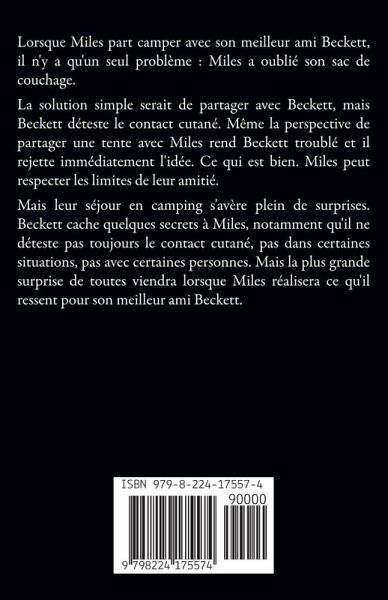 Lorsque Miles part camper avec son meilleur ami Beckett, il n'y a qu'un seul problème : Miles a oublié son sac de couchage. La solution simple serait de partager avec Beckett, mais Beckett déteste le contact cutané. Même la perspective de partager une tente avec Miles rend Beckett troublé et il rejette immédiatement l'idée. Ce qui est bien. Miles peut respecter les limites de leur amitié. Mais leur séjour en camping s'avère plein de surprises. Beckett cache quelques secrets à Miles, notamment qu'il ne déteste pas toujours le contact cutané, pas dans certaines situations, pas avec certaines personnes. Mais la plus grande surprise de toutes viendra lorsque Miles réalisera ce qu'il ressent pour son meilleur ami Beckett.