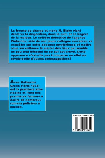 La femme de charge du riche M. Blake vient déclarer la disparition, dans la nuit, de la lingère de la maison. Le célèbre détective de l'agence Pinkerton, aidé de son jeune collègue narrateur, va enquêter sur cette absence mystérieuse et mettre sous surveillance le maître des lieux qui semble un peu trop détaché de ce qui est arrivé. Cette apparence n'est-elle pas trompeuse en effet ou révèle-t-elle d'autres préoccupations?