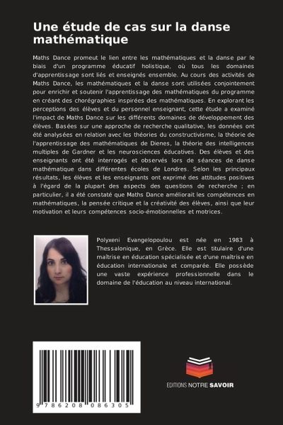 Maths Dance promeut le lien entre les mathématiques et la danse par le biais d'un programme éducatif holistique, où tous les domaines d'apprentissage sont liés et enseignés ensemble. Au cours des activités de Maths Dance, les mathématiques et la danse sont utilisées conjointement pour enrichir et soutenir l'apprentissage des mathématiques du programme en créant des chorégraphies inspirées des mathématiques. En explorant les perceptions des élèves et du personnel enseignant, cette étude a examiné l'impact de Maths Dance sur les différents domaines de développement des élèves. Basées sur une approche de recherche qualitative, les données ont été analysées en relation avec les théories du constructivisme, la théorie de l'apprentissage des mathématiques de Dienes, la théorie des intelligences multiples de Gardner et les neurosciences éducatives. Des élèves et des enseignants ont été interrogés et observés lors de séances de danse mathématique dans différentes écoles de Londres. Selon les principaux résultats, les élèves et les enseignants ont exprimé des attitudes positives à l'égard de la plupart des aspects des questions de recherche ; en particulier, il a été constaté que Maths Dance améliorait les compétences en mathématiques, la pensée critique et la créativité des élèves, ainsi que leur motivation et leurs compétences socio-émotionnelles et motrices.