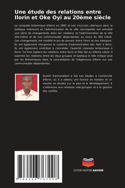 La conquête britannique d'Ilorin en 1897 et son incursion ultérieure dans la politique intérieure et l'administration de la ville cosmopolite ont entraîné une série de changements dans les relations et l'administration de la ville elle-même et de ses communautés dépendantes au cours du 20e siècle. Ces changements ont modifié le jeu de pouvoir entre l'émir et ses baloguns. Ils ont également réorganisé le système d'administration des fiefs à Ilorin. Ils ont également contribué à consolider l'autorité coloniale britannique à Ilorin. Ce livre explore les relations entre Ilorin et Oke Oyi au 20ème siècle. Il examine les relations entre les deux groupes et explique le rôle critique joué par les Britanniques dans la consolidation de l'hégémonie d'Ilorin sur ses communautés dépendantes.