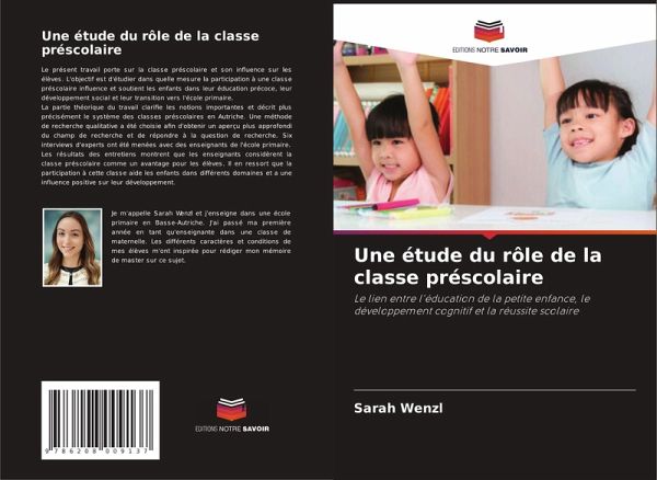 Le présent travail porte sur la classe préscolaire et son influence sur les élèves. L'objectif est d'étudier dans quelle mesure la participation à une classe préscolaire influence et soutient les enfants dans leur éducation précoce, leur développement social et leur transition vers l'école primaire.La partie théorique du travail clarifie les notions importantes et décrit plus précisément le système des classes préscolaires en Autriche. Une méthode de recherche qualitative a été choisie afin d'obtenir un aperçu plus approfondi du champ de recherche et de répondre à la question de recherche. Six interviews d'experts ont été menées avec des enseignants de l'école primaire.Les résultats des entretiens montrent que les enseignants considèrent la classe préscolaire comme un avantage pour les élèves. Il en ressort que la participation à cette classe aide les enfants dans différents domaines et a une influence positive sur leur développement.
