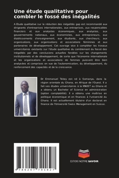 A Étude qualitative sur la réduction des inégalités gap est recommandé aux dirigeants d'entreprises internationales, aux entreprises, aux responsables financiers et aux analystes économiques, aux analystes, aux gouvernements nationaux, aux économistes, aux entrepreneurs, aux établissements d'enseignement, aux étudiants, aux chercheurs, aux organisations, aux organisations et associations féminines et aux partenaires de développement. Cet ouvrage vise à compléter les travaux universitaires existants sur l'étude qualitative du comblement du fossé des inégalités par des conclusions actuelles fondées sur les changements institutionnels et de développement, de sorte que l'économie internationale et les organisations et associations de femmes puissent être bien analysées et comprises en vue de l'autonomisation, du développement, du renforcement des capacités et de la croissance.
