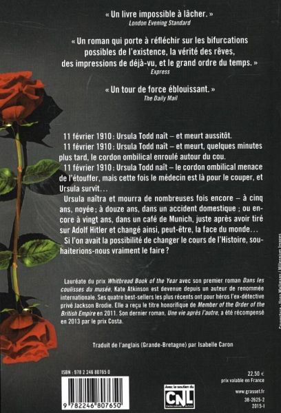 11 fevrier 1910: Ursula Todd nait - et meurt aussitot. 11 fevrier 1910: Ursula Todd nait - et meurt, quelques minutes plus tard, le cordon ombilical enroule autour du cou. 11 fevrier 1910: Ursula Todd nait - le cordon ombilical menace de l'etouffer, mais cette fois le medecin est la pour le couper, et Ursula survit... Ursula naitra et mourra de nombreuses fois encore - a cinq ans, noyee; a douze ans dans un accident domestique; ou encore a vingt ans, dans un cafe de Munich, juste apres avoir tire sur Adolf Hitler et change ainsi, peut-etre, la face du monde... Etablis dans un manoir bucolique du nom de Fox Corner, les Todd portent sur leur environnement le regard distancie, ironique et magnanime de ceux que les tragedies de l'Histoire epargnent. Hugh, le pere, travaille a la City, tandis que Sylvie, la mere, reste a la maison et eleve ses enfants a l'ancienne. Mais le temps, en la personne d'Ursula, va bientot se detraquer, se decomposer en une myriade de destins possibles qui vont, chacun a sa maniere, bouleverser celui de la famille... Si l'on avait la possibilite de changer le cours de l'histoire, souhaiterions-nous vraiment le faire ?
